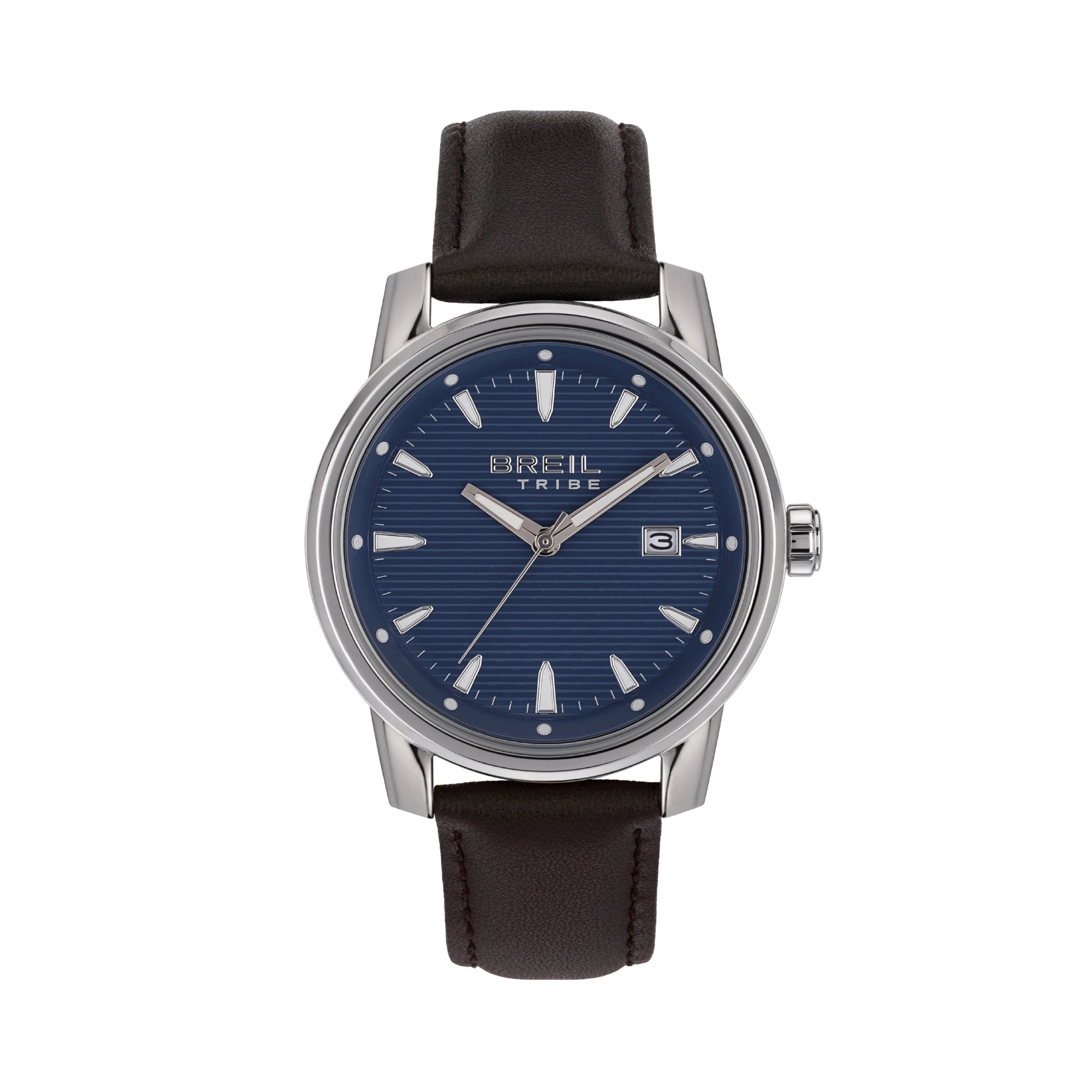 L'orologio da uomo solo tempo da uomo Caliber accosta alla semplicità delle linee della cassa un quadrante blu ricco di dettagli e lavorazioni. Il pattern a righe che lo caratterizza crea uno sfondo perfetto per indici, sfere e contatori che giocano sulla sovrapposizione cromatica. Le finiture dell'acciaio lucide e satinate sottolineano ulteriormente l'attenzione ai particolari. Il cinturino in pelle marrone rende questo orologio un perfetto evergreen.
