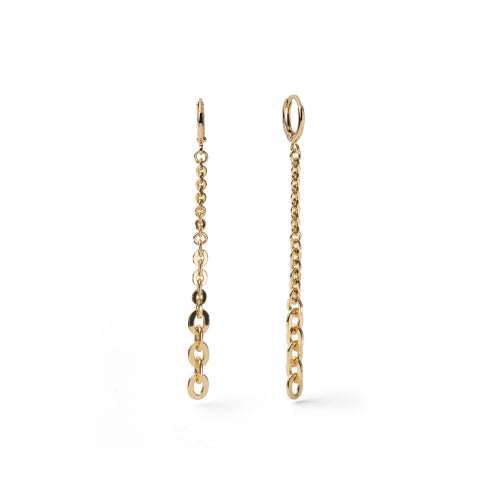 Orecchini lunghi in catena forzatina dorata. Chiusura a monachella, lunghezza 8,00 cm. Collezione Classica.